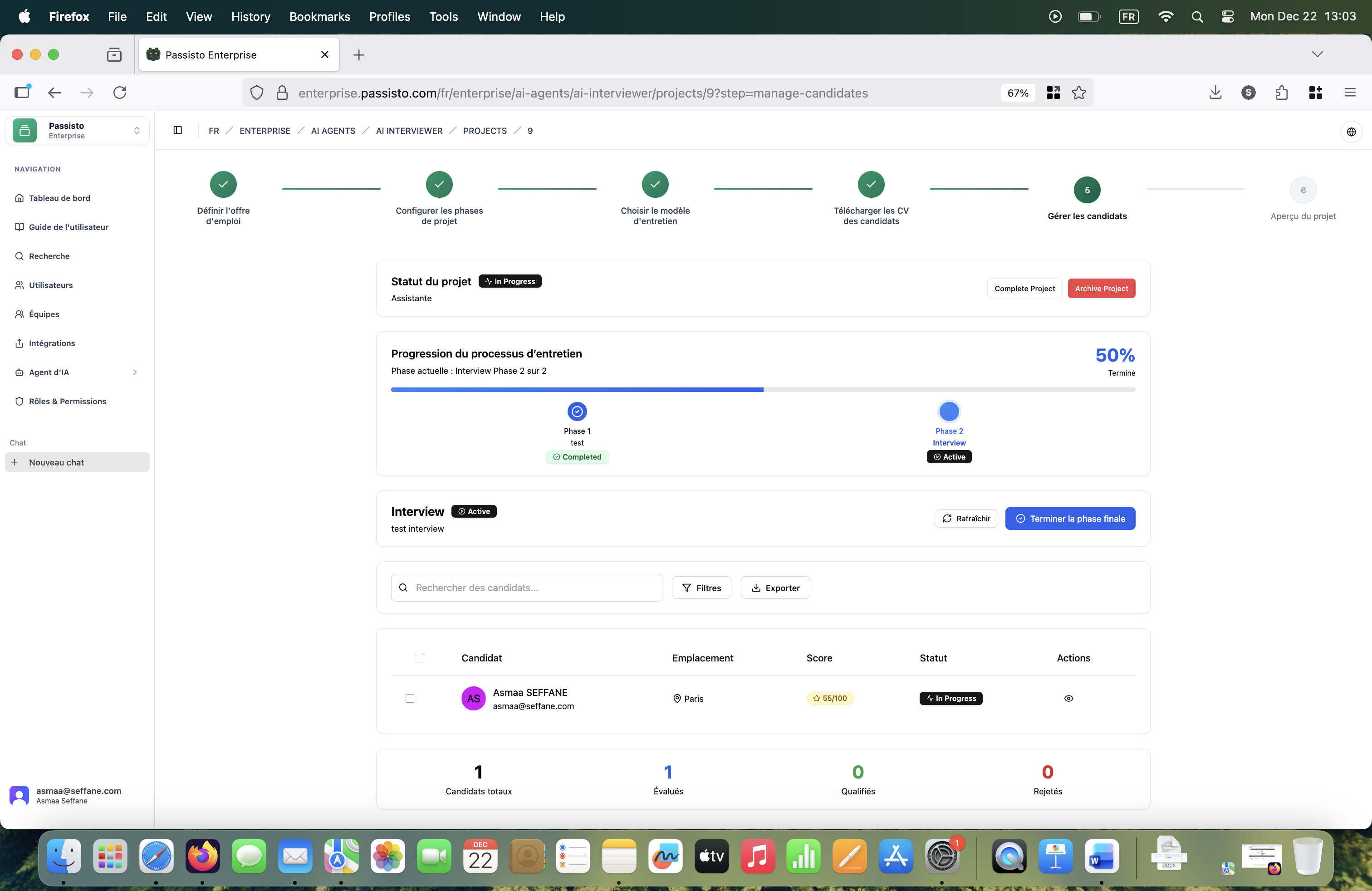 Passisto apporte une réponse innovante en combinant la puissance de l’IA avec une approche centrée sur l’humain. Grâce à notre Hiring System, vous pouvez scorer les CV, sélectionner les profils les plus pertinents et valider leurs compétences réelles via des tests adaptés. Cette méthode garantit un recrutement plus rapide, plus fiable, et mieux aligné avec vos besoins.